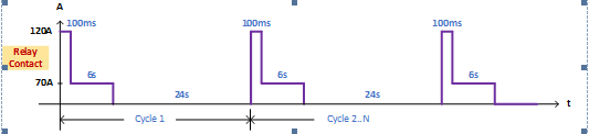 電動車繼電器組件的拉載電流時序可簡化模擬成以下時序圖